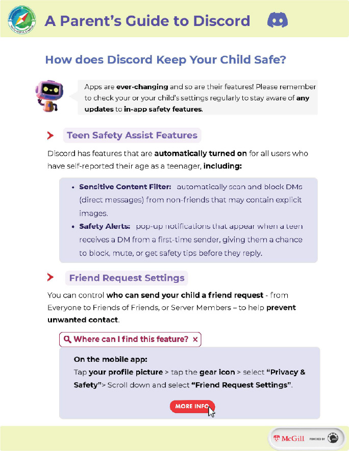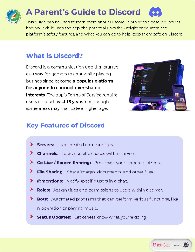 Here you can learn more about Discord: how your child uses the app, potential risks, the safety features, and what you can do to help keep your children safe.